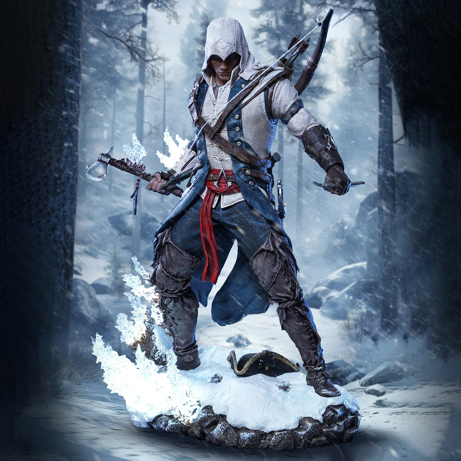 The quintessential Pure Arts animus-LED effect representing the bridge between past and present materializes from Connor’s left side. Standing at 11 inches tall, the Animus Connor 1:8 Scale Statue is the perfect size for any Assassin’s Creed fans’ set up!