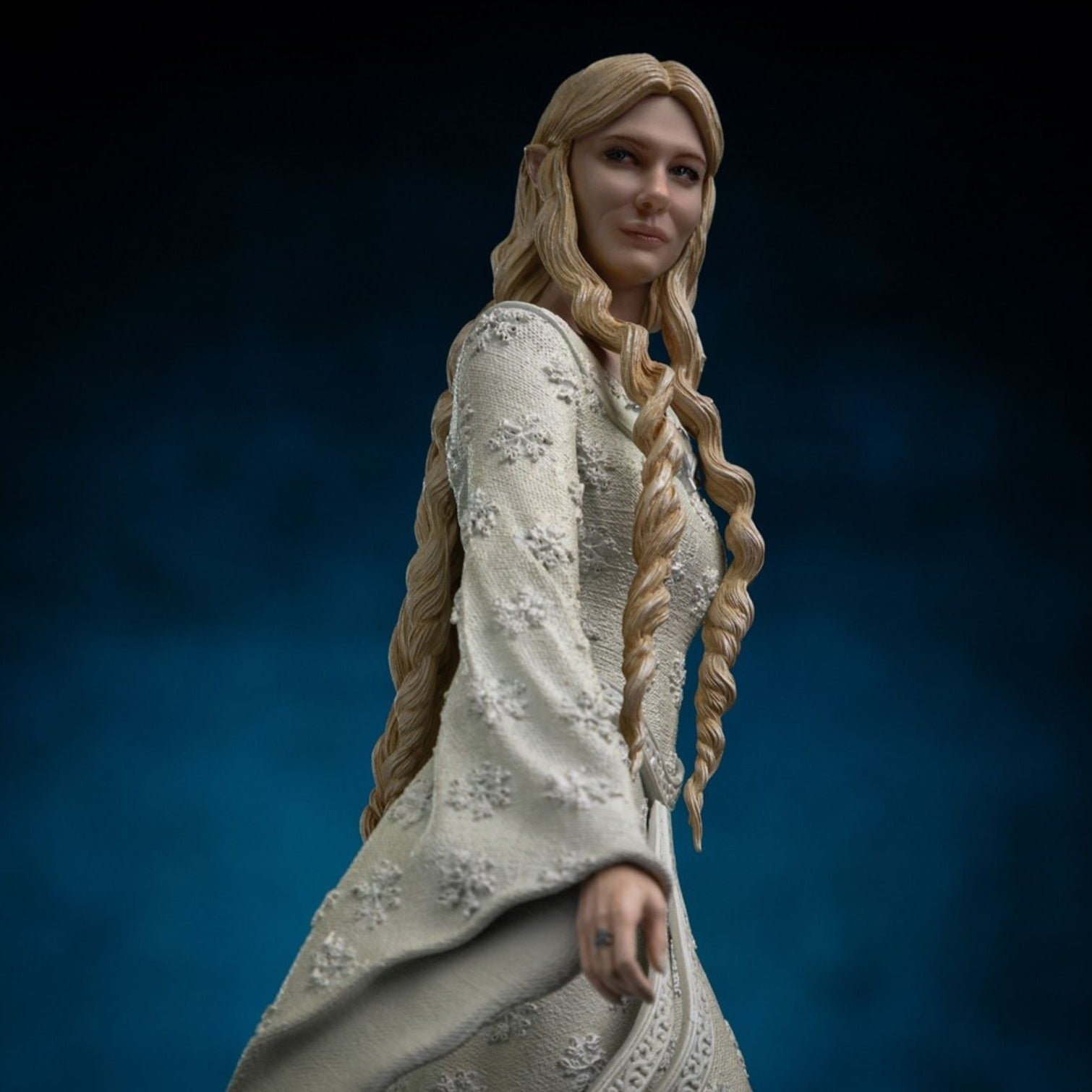 Continuing the line inspired by the LOTR movie trilogy by Peter Jackson, the statue Galadriel - Lord of the Rings - Art Scale 1/10 measurements are 12 in (H) x 5.7 in (W) x 5.8 in (D) – 2.2 lbs., which ensures an impressive display of the figure in any environment.