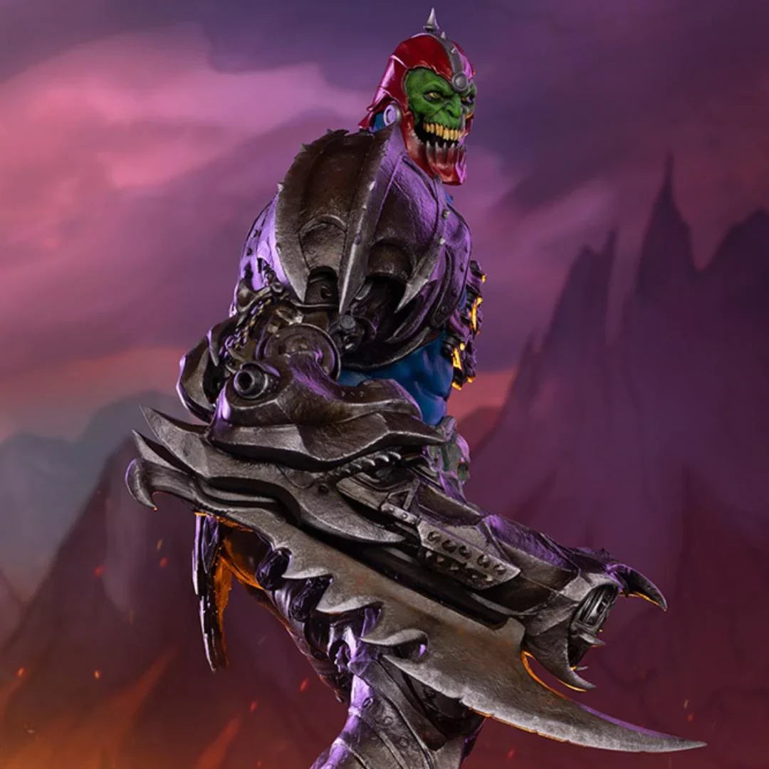 The polyresin Trap Jaw Maquette is covered head to toe in deadly detail, proving why they call him the Wizard of Weapons. His costume includes his signature maroon helmet with an indestructible crushing jaw, meticulously constructed mechanical armor with spikes and claws, a multipurpose robotic arm, and a belt of power tools. Rust and patina paint effects create the look of a weathered warrior who has survived — and emerged victorious from — countless battles.